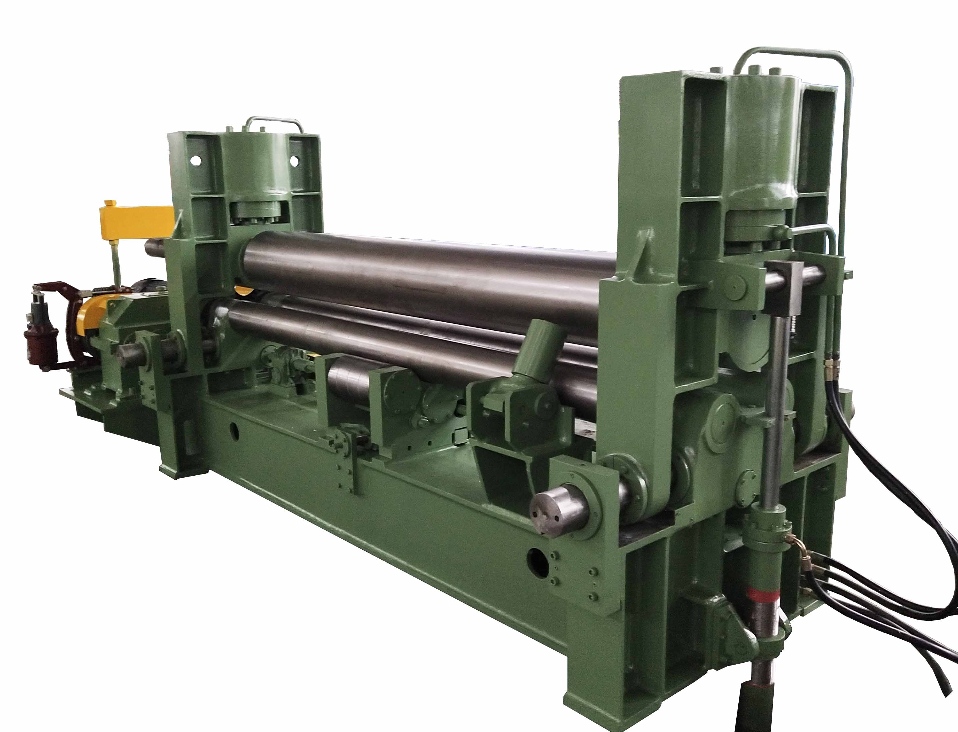 W11SNC萬能式三輥卷板機(jī)是一種雙夾板彎板機(jī)。 上輥為液壓驅(qū)動(dòng)。 上輥可水平和垂直調(diào)節(jié),兩個(gè)下輥是固定的。 所有合金鋼輥均經(jīng)過感應(yīng)淬火和熱處理。 經(jīng)過感應(yīng)淬火處理后,所有的輥都將被研磨和拋光。